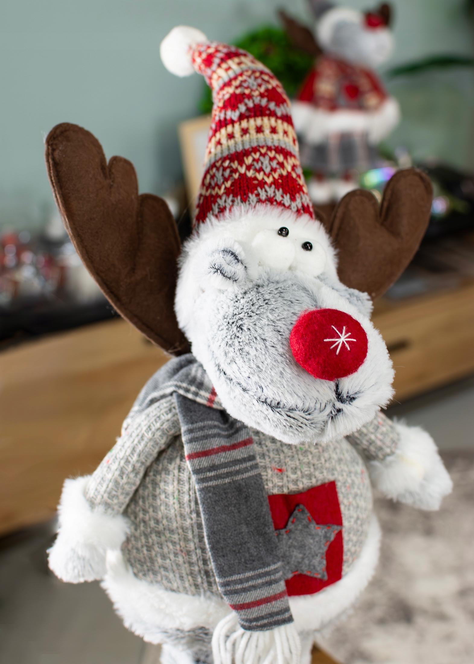 RENIFER świąteczny DUŻY dekoracja świąteczna ŁOŚ skrzat gnom zimowe ubranko